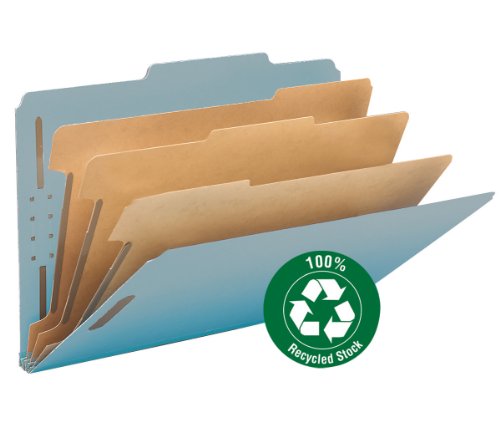 -. Title : Smead 100% Recycled Pressboard Classification File Folder, 3 Dividers, 3" Expansion, Legal Size, Blue, 10 per Box (19090)