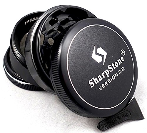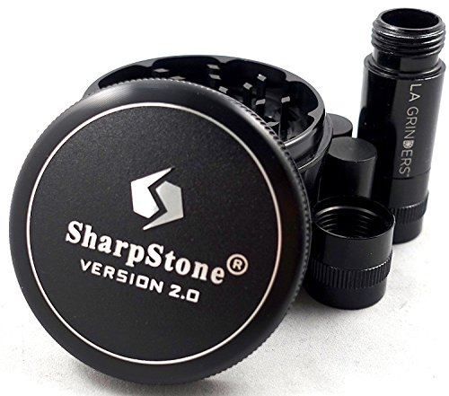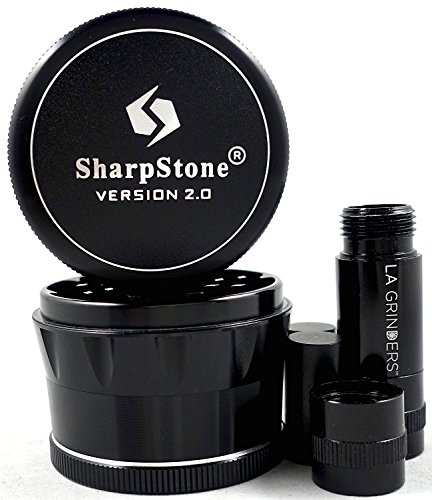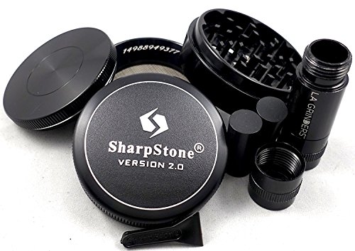 2.5" Sharpstone Version 2.0 Black 4 Piece Solid Top Grinder with a La Grinders Pollen Press