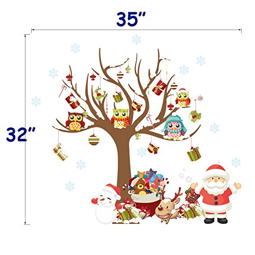 Dnven (35"w X 32"h) Owl Christmas Trees with Gifts Under the Trees Snowman Santa Clause Wall Decals Vinyl Removable Wall Stickers Lettering Words Quotes for Bedrooms Kids Rooms Windows Christmas