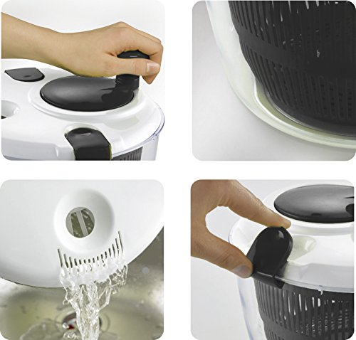 SAFE AND EFFICIENT – the cover features two clip locks to securely close the spinner and the bowl has a non-slip rubber gasket to keep the vegetable spinner stable on the counter