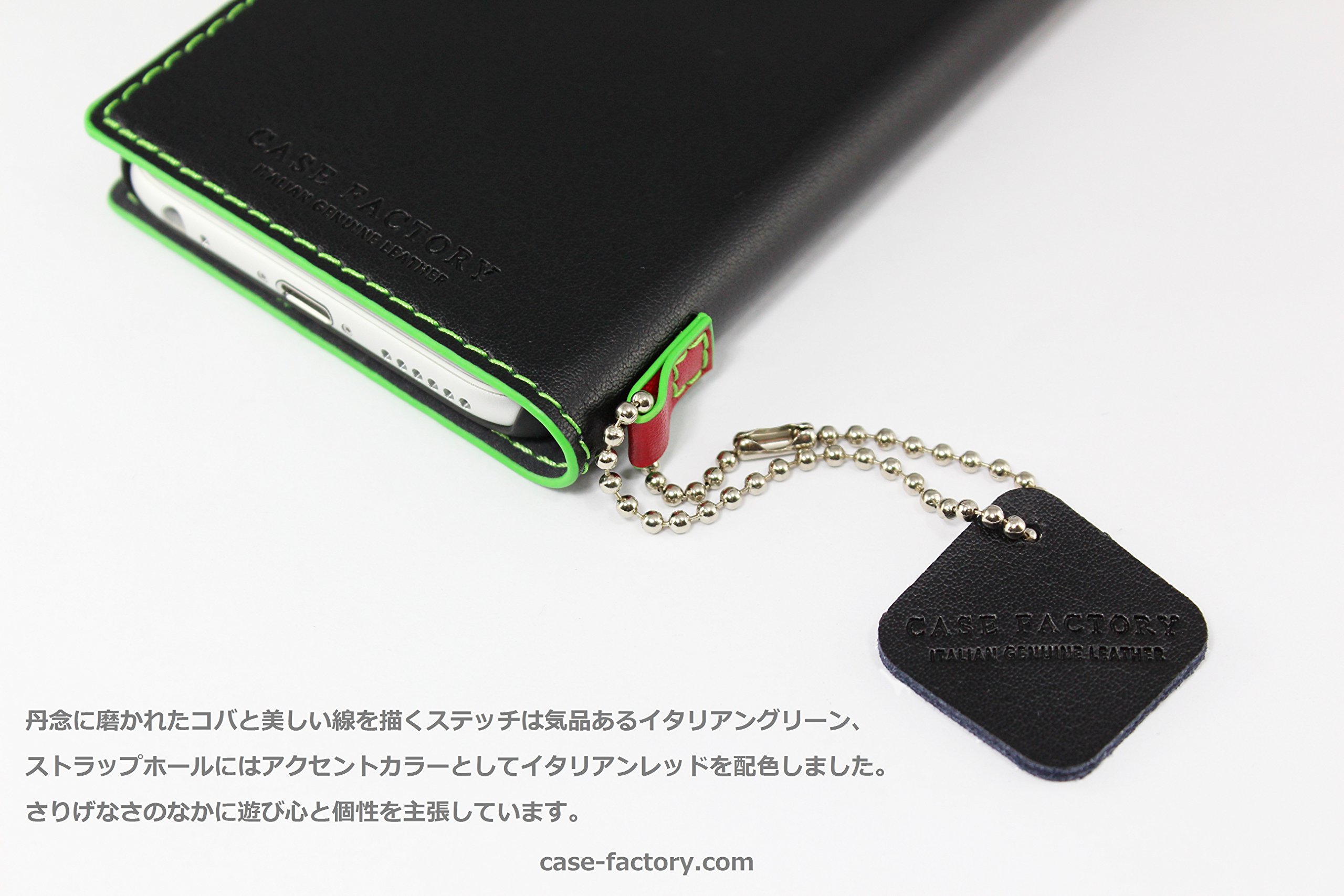 The stitch that draws beautifully polished cobbles and beautiful lines has a refined Italian green, and the strap hole has been colored Italian Red as an accent color.