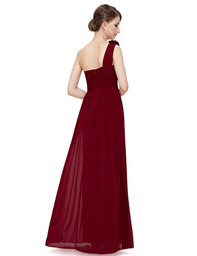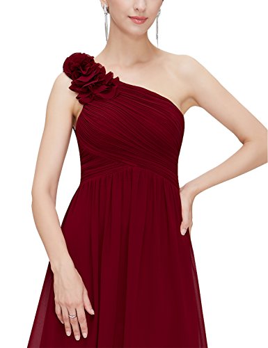 One shoulder long party dress. Padded enough for "no bra" option. Stylish hand-made flower decorates the single shoulder. Unique ruched bust creates an elegant silhouette. Simple and fashion design. Concealed zipper up the back. Lining, no stretchFeature