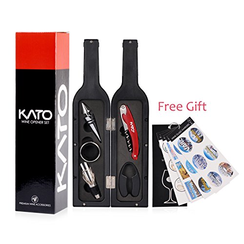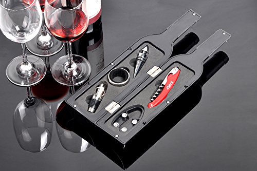 Product Introduction: ? Wine gift ideas for a Wedding reception, Housewarming present, Anniversary celebration, Garden party ? 5 pcs of Wine Set include: Corkscrews wine bottle opener, wine Stopper, Foil cutter, Aerator Pourer, Foil Cutter, Drip ring ? Each piece of this set is fully able to handle anything you throw at it with ease. ? Design: Hold all your wine opener tools in a red wine shaped box, this lovely set can be stored nearly anywhere as its compact design. Size: 13(L) x 3(W) inches ? Perfect Christmas Thanksgiving Wedding Festival Father's Day Gift, Grandpa Father's Day gifts from daughter son wife kids ? Including 36 funny wine glass markers static cling reusable stickers