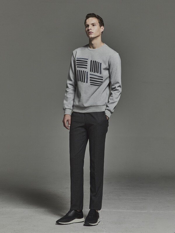 탄탄한 조직의 면혼방 소재로 흐느적거리지 않는 실루엣으로 울팬트의 빗살무늬 아플리켓 포인트를 준 맨투맨 입니다
