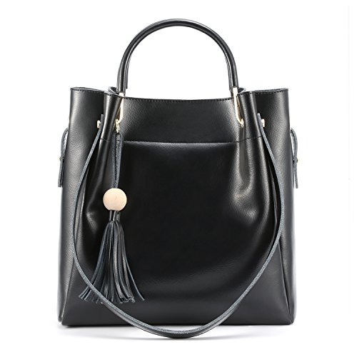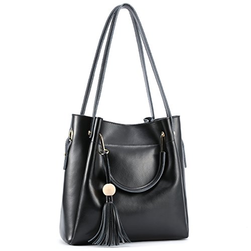 Kattee Women's Genuine Leather Hobo Tote Shoulder Bag with Tassel