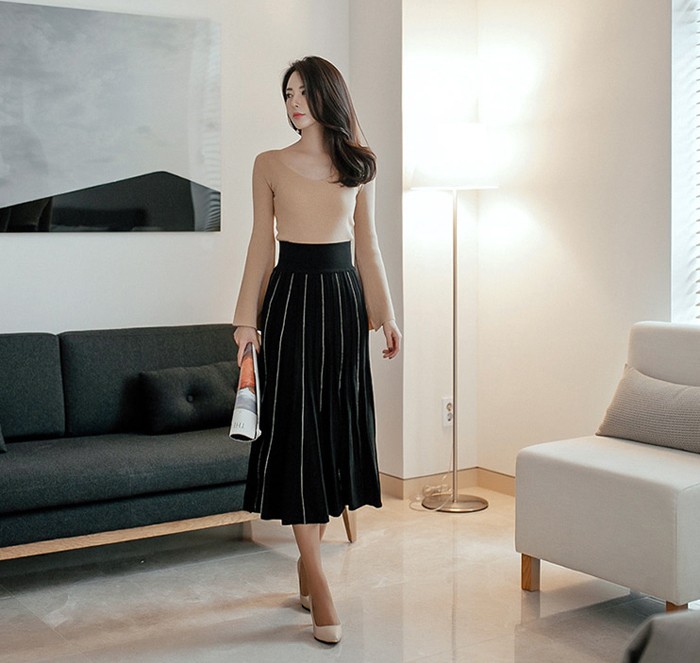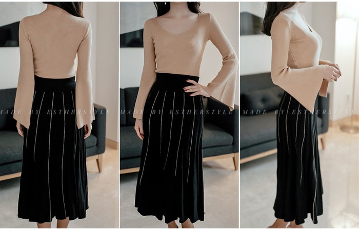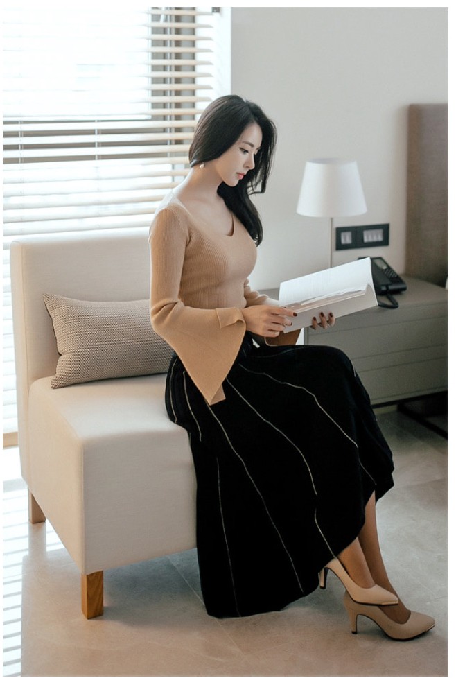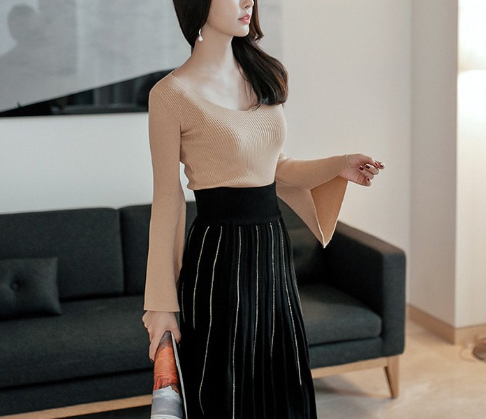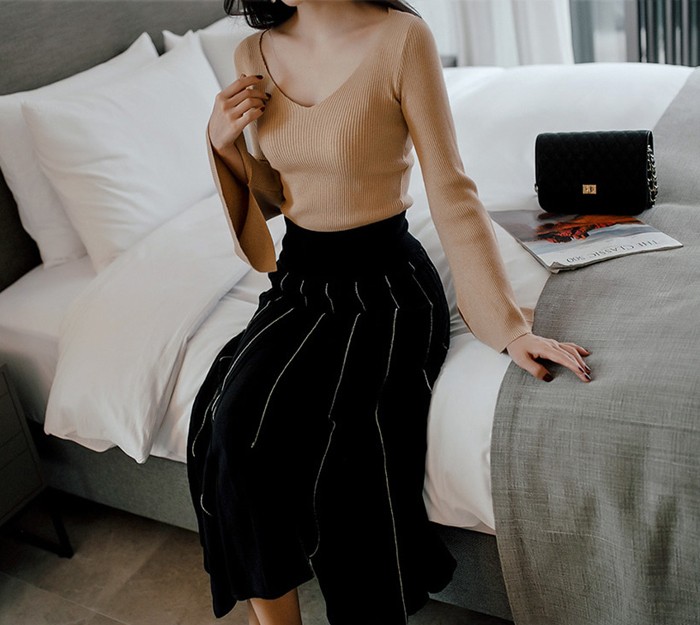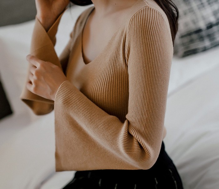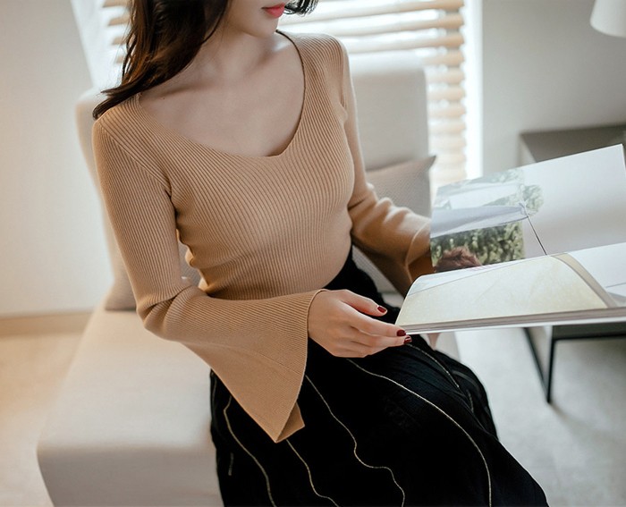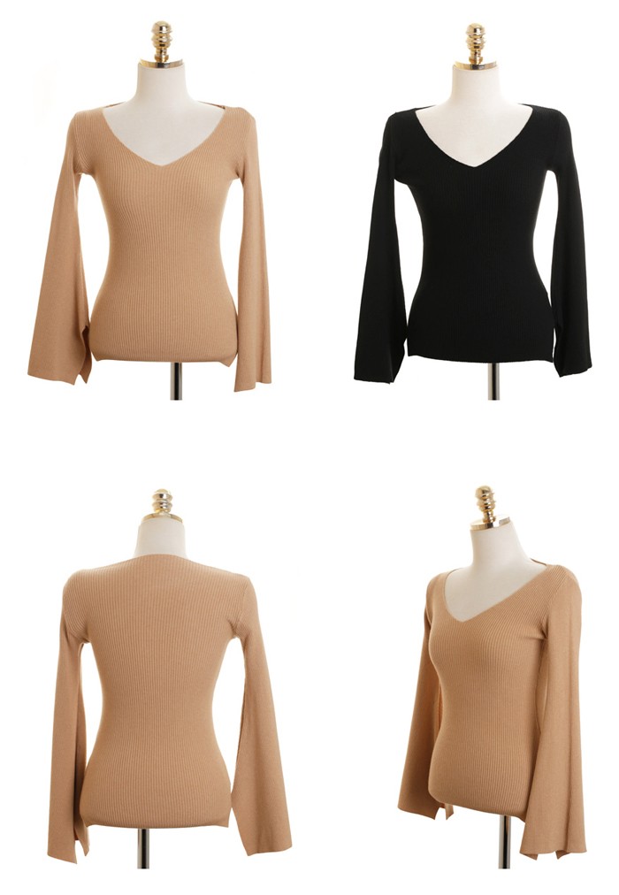商品名:ニット トップス Tシャツ 長袖 無地
