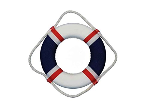 This Decorative USA Lifering 20" will compliment any beach home perfectly. Combining patriotic colors of red, white and blue, this hand-stitched nautical lifering will light up your beach living room, beach wedding decorations or beach themed party. Our life ring decorations are the perfect choice for any beach setting. Handcrafted Nautical Decor is the premier manufacturer of the world's finest model boats, nautical decorations and tropical & beach decor. Whether you are looking for stunningly accurate models of historical ships like the Titanic or Blackbeard's pirate ship, or you're looking for nautical replicas, gifts and decor such as compasses, world globes, porthole mirrors, model sailboats, ships in a bottle, or brass spyglass & telescopes, Handcrafted Nautical Decor provides the highest quality expertly handcrafted nautical gifts at wholesale prices. Their extensive product line of model ships, nautical decorations & gifts includes trendy tropical, sailing and beach decor, as well as supplies and decor for your home or nautical-themed party. Handcrafted Nautical Decor products are designed by master artisans and crafted from the finest materials available; their fully assembled model ships and decorative items make great gifts for all ages and will be a stunning addition to your home or office.Feature