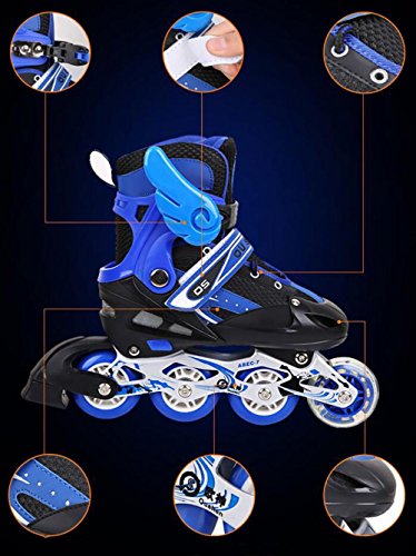 Studio : WY Publisher : WY Product Description Product Category: roller skates Uppers Material: Mesh Grocery Material Sole material: aluminum alloy bracket Wheel type: single row Applicable Gender: Universal Wheel material: PVC hard wheel Size: Single shoes can be adjusted medium 35-38 blue Single shoes can be adjusted large 39-42 blue Single shoes adjustable trumpet 31-34 blue Uses: entertainment, fitness Adjustment mode: button adjustment, automatic button. Upper: semi-soft breathable composite material, sandwich mesh Size: S, M, L can be adjusted: large 39-42. Medium 35-38. Trumpet 31-34 Bracket: two-piece high-strength aluminum alloy bracket. Wheels: PVC single flash wheel, a light, all PVC wheel, hard wheel is not flexible. Packing: color box packaging Gift service tools. Brakes: Brakes, higher safety performance. Brake on one foot. color: blue, This section straight stretch skates, has been carefully designed according to the user's foot size free to adjust the size, Brake sensitive brakes and high-strength plastic stent, exquisite, practical, to ensure your safety at the same time, but also have a kind of wind like the elegant and free feeling, 0