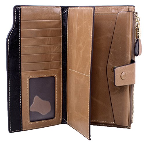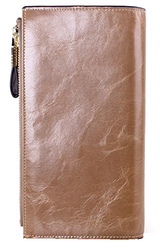 -. Feature : Material: leather,Top Grain Leather with waxing and oiling finish, luxury looking and feel. / Dimensions: 7.48"L x 3.9"W x 0.78"H . The Weight is 0.34 pounds. / Capacity:21 Gredit card slots,1 Window. 4 full-length compartments and a zippered pocket. / Exquisite workmanship: Its uniform stitches create both beauty and durability, New style, beautiful and shinning color, Multi-storey fold is designed for you to keep your things organized well,scratch resistant and durable with classic and vintage design, which make it convenient and suitable for daily life,make you outstanding and unique from others. / You can also give this wallet to your lover, relatives or best friends as a valuable gift.