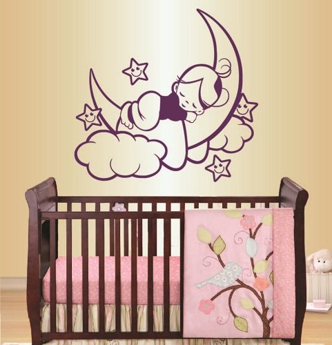 -. Title : Wall Vinyl Decal Home Decor Art Sticker Cute Baby Sleeping on Moon Clouds Stars Kids Nursery Bedroom Room Removable Stylish Mural Unique Design