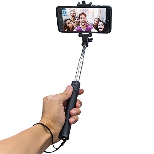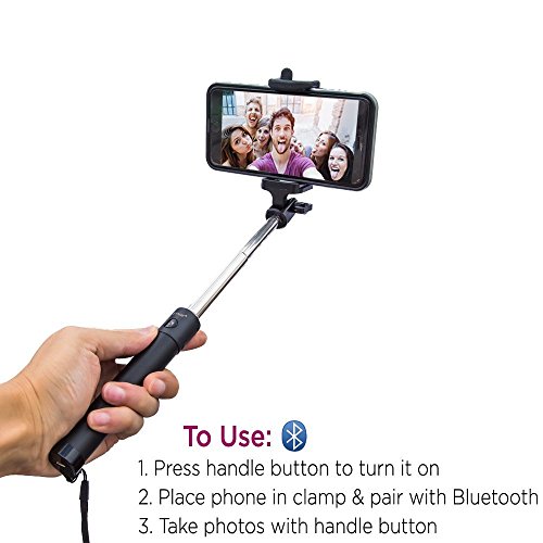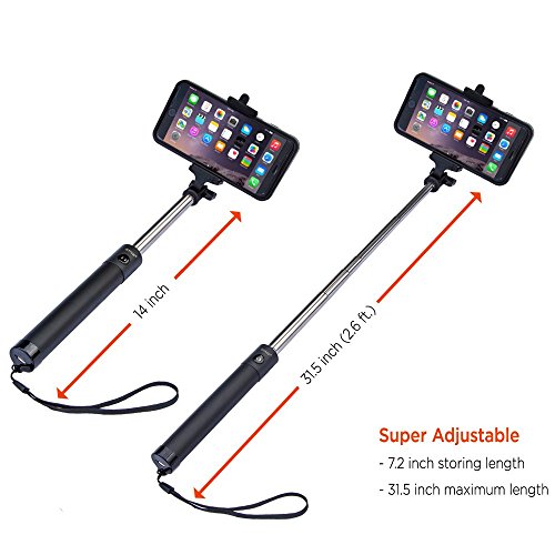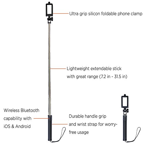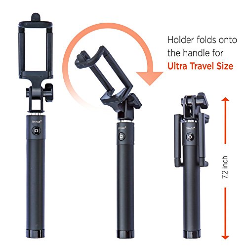 iStage New 2015 selfie stick Ultra Compact Foldable Pro 3-in-1 Wireless Bluetooth Extendable Selfie Stick with built-in Bluetooth Remote Shutter for iPhone 6s, 6s plus, 6, 6 plus, 5S, 5, 4s, 4, 3s, ipod, Samsung Galaxy S6, S5, Android smart phones- Black