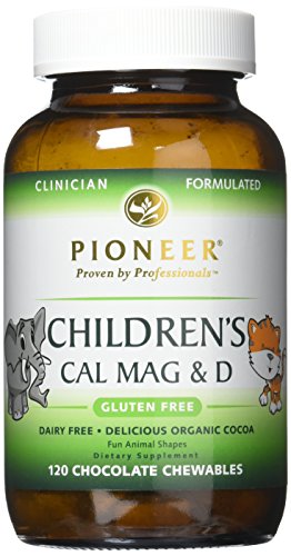Children's Cal Mag & D Description: Support for children's healthy bones and teeth in a delicious chocolate, jungle animal shaped chewable tablet. Formulated for kids with appropriate amounts of calcium, magnesium, vitamin D3 and trace minerals. Organic cocoa provides healthy flavonoids and a delicious chocolate flavor kids will love. Naturally sweetened with xylitol and maltitol. Sugar-Free and Dairy-Free. Size: 120ct Directions: Use only as directed. Children ages 4-8: Two chewables once daily. Children ages 9-13: Two chewables two times daily. Store in a cool, dry place. Serving Size: 2 ea 60 Servings per con