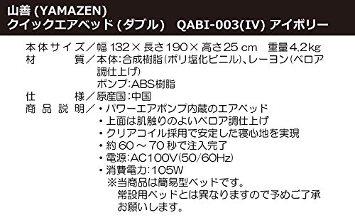 원본상품명: 山善(YAMAZEN) クイックエアベッド ダブル【ブラック/ブラウン/アイボリ?/ゼブラ/レオパ?ド】 幅190?行132 AC電源ポンプ??