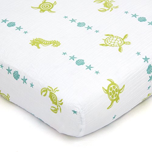 -. Title : Bambino Land Organic Muslin Crib Sheet - Animal Designs (Sea Creatures)