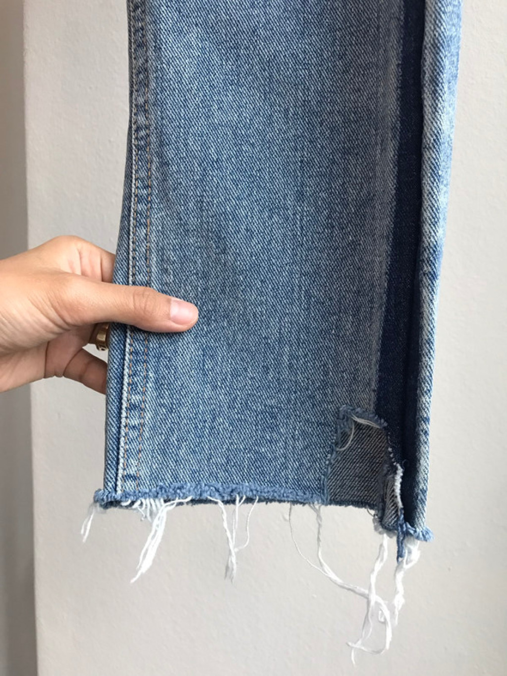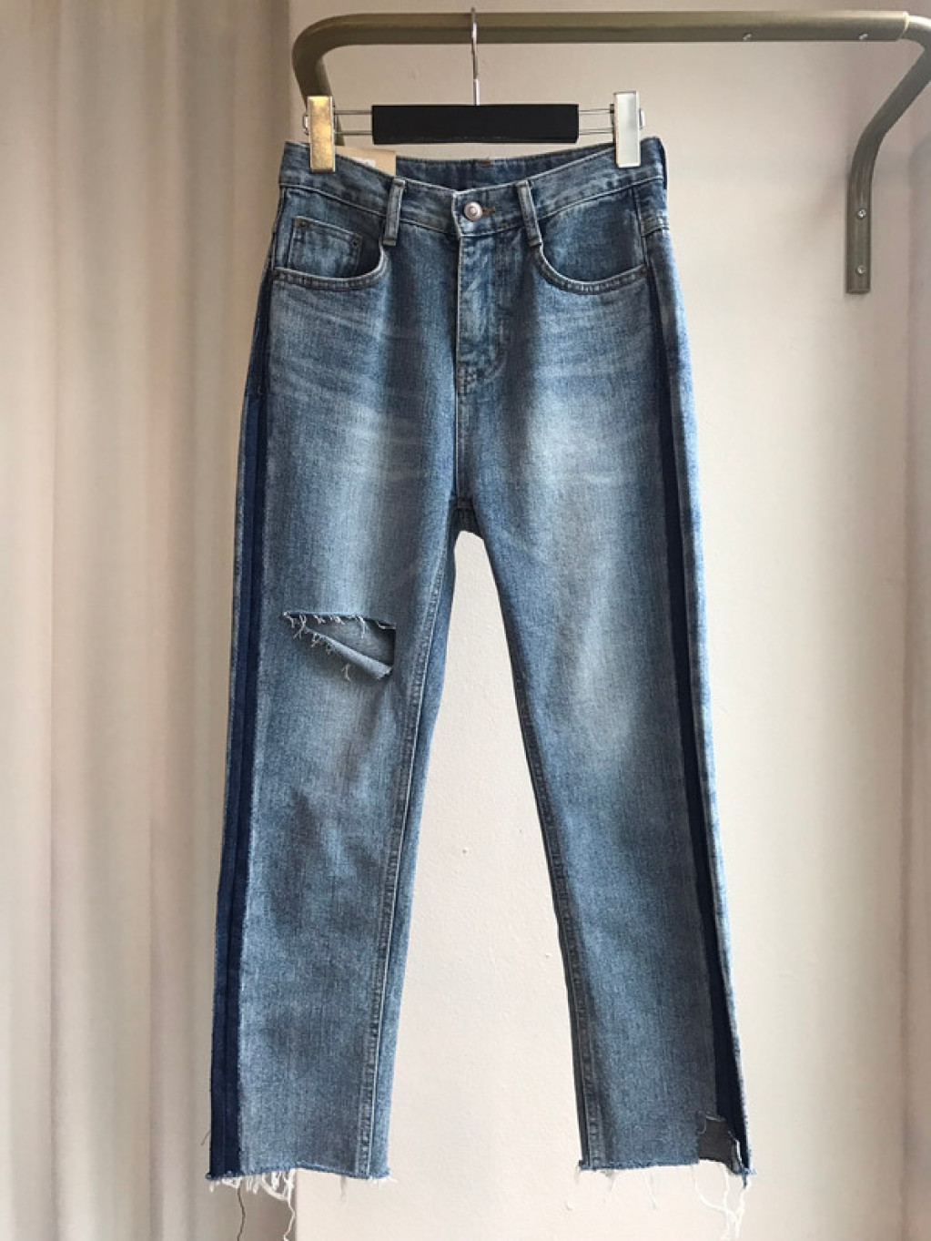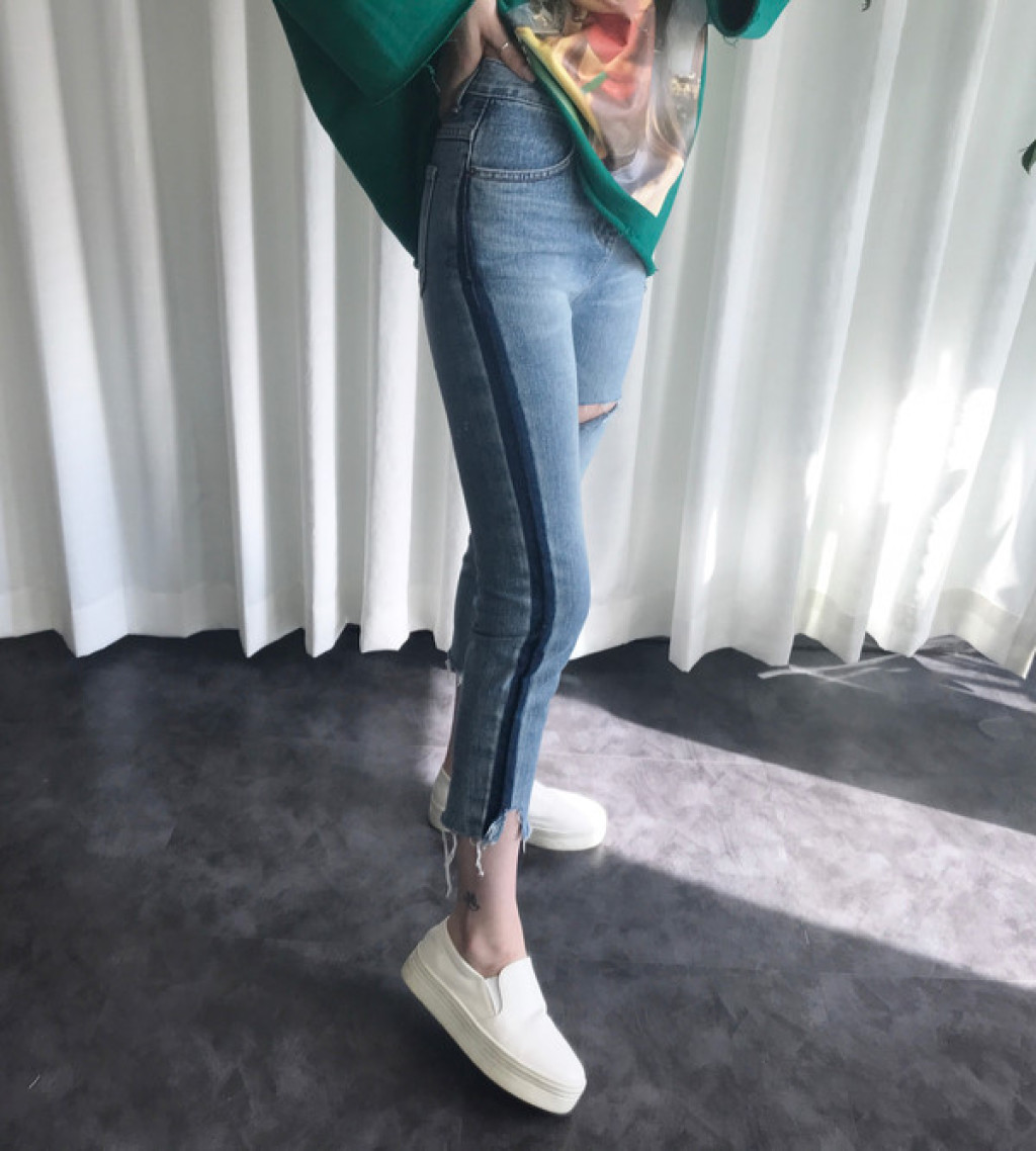 허리부터 발목까지 청바지 옆 라인에