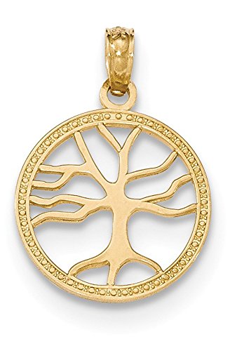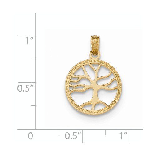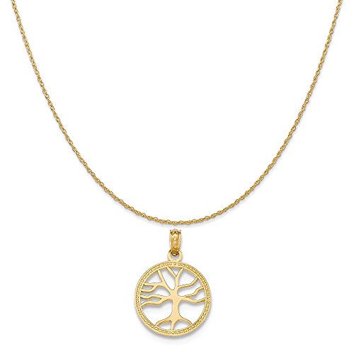 14k Yellow Gold Polished 3-D Small Tree Of Life in Round Frame Pendant on Rope Chain Necklace, 18". The Pendant on this Necklace is on an 18 inch Rope Style 14k Yellow Gold Chain and is Packaged in a Satin Jewelry Pouch.
