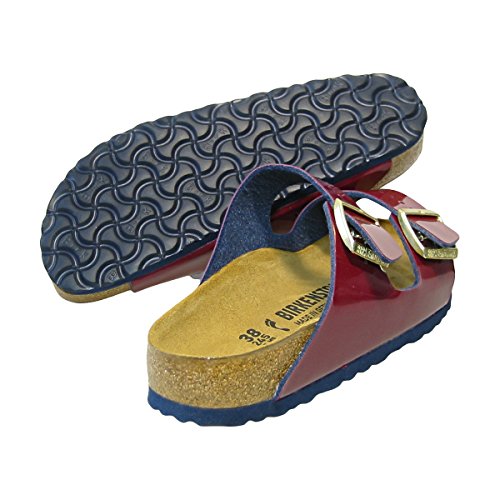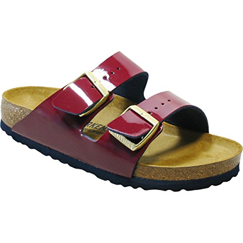 Binding : Apparel Product Description The Birkenstock Unisex Arizona Birko-Flor Sandal, a classic two-strap style with Birko-Flor uppers (not real leather), fully adjustable straps and shock-absorbing EVA sole. Birko-Flor - a synthetic material made of acrylic and polyamide felt fibers that is comfortable and tear resistant. This material has a synthetic leather-like finish with felt lined backing. Wipes clean with mild soap and water. The classic Birkenstock footbed - features pronounced arch support, a deep heel cup, and a roomy toe box. The footbed conforms to the shape of your foot. EVA - flexible, lightweight, durable and shock absorbing. **** Please note: Birkenstock makes the Arizona Sandals intentionally roomy for added comfort so they tend to run large. Most people prefer it this way as the straps can always be tightened if needed! However, if you prefer a "very tight fit" we recommend purchasing a size smaller than you typically purchase. For example, if you normally purchase a size 38 M, we recommend purchasing a size 37 M. **** 0