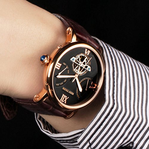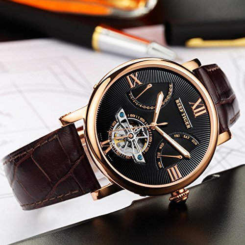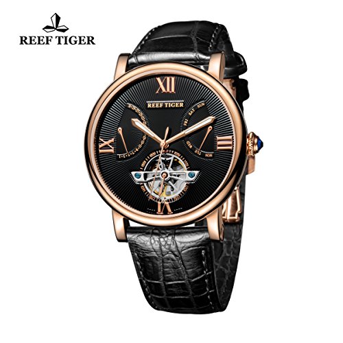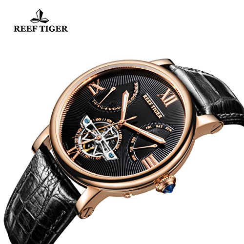 Tourbillon Small Seconds at 6:00, Date at 9:00, Day at 3:00.