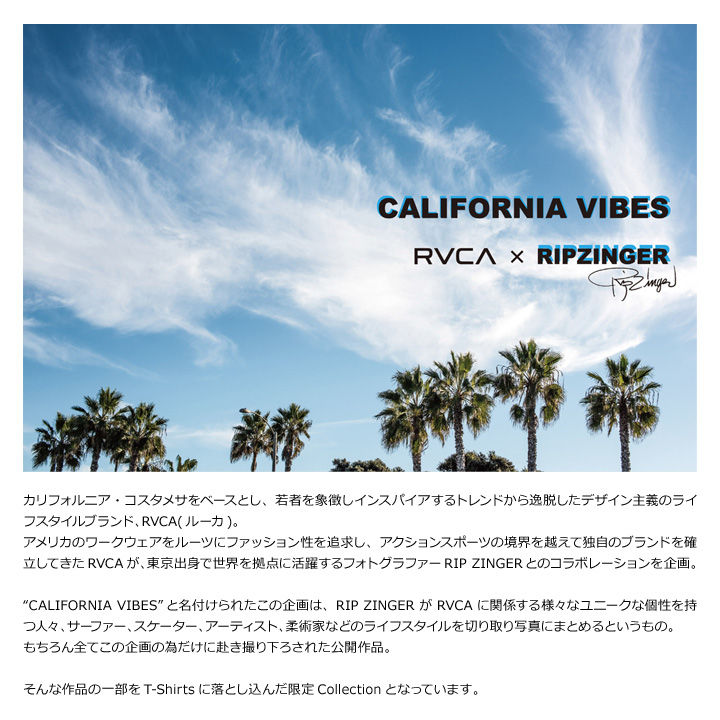 サーファー、スケーター、アーティストなどの飾らない日常を切り取ったフォトプリントはリップジンガーでしか実現できない個性的な世界観が楽しめるアイテムです。