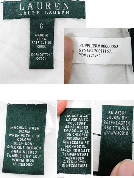 Ladies ブランドLAUREN RalphLauren ローレン ラルフローレン カラー白 メール便可 コンディション★★★ 素材コットン 表記サイズ6 実寸サイズ 着丈 109 cm 身幅 42 cm 肩幅 24 cm ※ウエスト・ヒップ以外は平置き採寸【code】#c