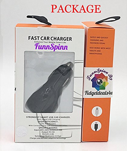 Dual Port Fast Adaptive Quick Charge 3.0 Car Charger with Dual USB Ports For Samsung Galaxy NOTE 8 S8/S7, LG G5 G6, HTC 10 , iPhone 6 7 Plus , iPad Pro , Motorola & More FunnSpinn (Black)