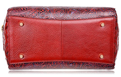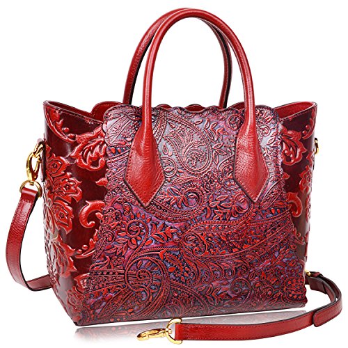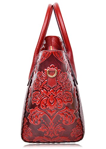 Fashion Leather Handbag : 100% Genuine Leather with Embossed Floral , Fabric Lining;