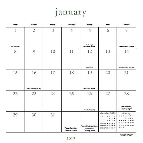 -. Feature : 2017 Calendar featuring beautiful images for every month of the year. / Includes Holidays and Observances. / Keep your appointments and Birthdays organized in one place! / Perfect for office spaces, bedrooms, classrooms and more! / Makes a great gift for friends and family!
