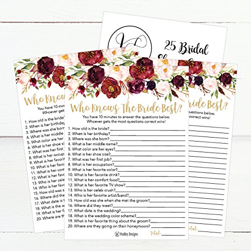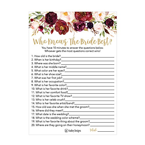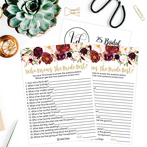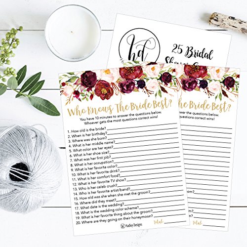 25 Cute Flowers How Well Do You Know The Bride Bridal Wedding Shower or Bachelorette Party Game Floral Who Knows The Best Does The Groom Couples Guessing Question Set of Cards Pack Printed Engagement