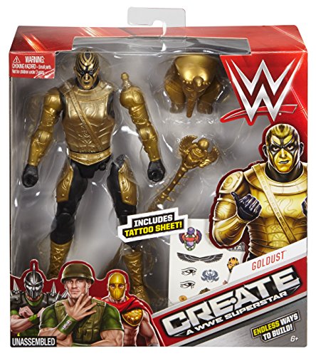 -. Binding : Toy -. Brand : Mattel -. EAN : 0887961226058 -. Feature : Take a WWE Superstar and get him ready for the ring however you want him to enter! / Mix and match gear, ring attire and body parts / Nearly unlimited combinations allow you to create your own WWE Superstar / Accessories and gear are compatible with other 6-inch WWE figures to mix and match through out the line / Lots of imaginative play for WWE fans -. Label : Mattel -. Manufacturer : Mattel -. Model : DJJ20 -. MPN : DJJ20 -. PackageQuantity : 1 -. PartNumber : DJJ20 -. ProductGroup : Toy -. ProductTypeName : TOYS_AND_GAMES -. Publisher : Mattel -. Studio : Mattel -. Title : WWE Create A Superstar Goldust Figure -. UPC : 887961226058 -. Warranty : 1 year warranty against manufacturer defects