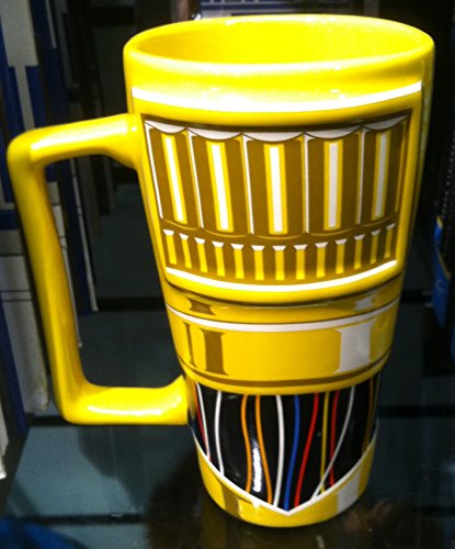 -. Brand : Disney -. Color : Yellow -. EAN : 0632709698518 -. Feature : Tall latte mug with raised dimensional elements / Holds 16 ounces / Ceramic mug is dishwasher and microwave safe / Officially licensed by Disney / 6'' H x 3 1/4'' Diameter (4 1/2'' W at handle) -. Label : Disney -. Manufacturer : Disney -. PackageQuantity : 1 -. ProductGroup : Kitchen -. ProductTypeName : KITCHEN -. Publisher : Disney -. Size : 16 oz -. Studio : Disney -. Title : C-3PO Mug -. UPC : 617561261797