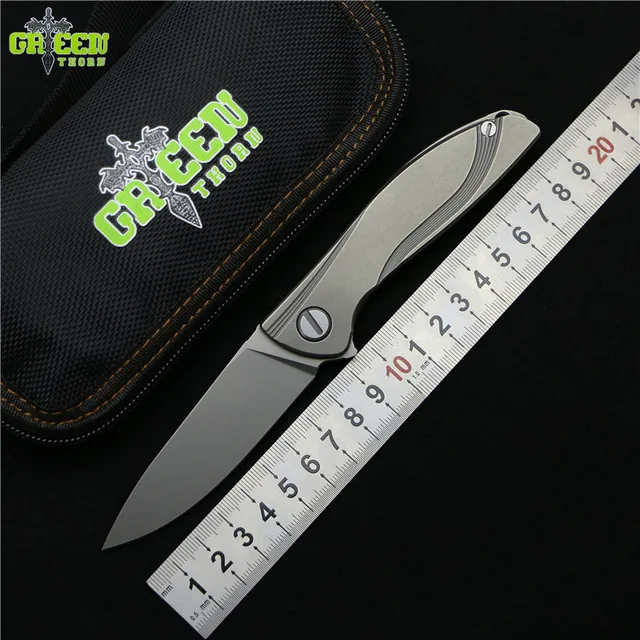녹색 가시 네온 라이트 M390 MRBS TC4 티타늄 핸들 캠핑 사냥 야외 유틸리티 과일 나이프 포켓 접는 나이프 EDC 도구