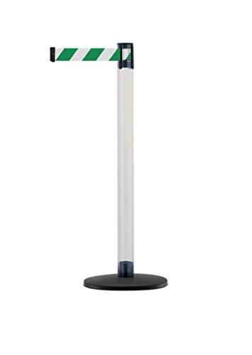 Tensabarrier TCLB-33-STD-NO-D2X-C Post, 7'6" length Chevron Green & White belt, 38" Height, 2" wide, 90" Length, Clear