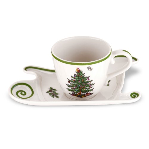 -. Title : Spode Christmas Tree Jumbo Cup with Sleigh Shaped Saucer
