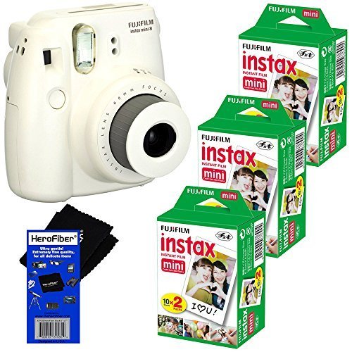 This kit includes 5 items; Fujifilm instax mini 8 Instant Film Camera (White), 3 Fujifilm Instant Color Film Packs (60 sheets) & HeroFiber® Ultra Gentle Cleaning Cloth