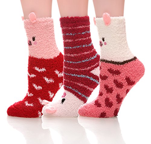 -. Feature : SUPER SOFT - High Quality Material (98% Polyester 2% Spandex). These are softest luxury women socks you will find on the market. / GREAT VALUE - Chose a 3-Pack or 2-Pack for best value. These great winter socks come in a variety of cute pattern and pack sizes (5-10) to ensure the maximum options and value to our customers. Choose your favorite pattern combination! / ABSOLUTELY ADORABLE - Our cute winter fuzzy socks cover your feet with Cute animal Designe Get different color in each set. / VERSATILE - Cute and soft design - These Winter socks are incredibly stretchy and will fit most adults. Fits women's shoe size up to 10 . Choose these socks for the comfort, look, security, warmth, gentle compression / SPECIAL DESIGN- full of great fun and joy. Soft and comfortable cotton fabric on your feet, accompany you around every corner, go on a trip with you and living your colorful life.