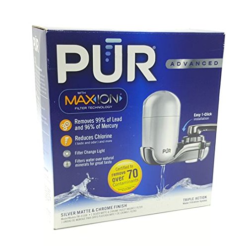 -. Binding : Kitchen -. Brand : PUR -. Color : Silver,chrome -. EAN : 0751369657847 -. Feature : Simple 1-click establishment makes it simple to evacuate and supplant when you require additional room in the sink. / Filter removes 99% of lead and 96% of mercury along with many other contaminants / MineralClear filters water over natural minerals for a crisp, refreshing taste Only available with Advanced and AdvancedPlus Faucet Water Filters / 360-degree swivel permits it to fit well in many sinks. / Worked in electronic channel life pointer lets you know when the channel should be changed. -. IsAutographed : 0 -. Label : Pur -. Manufacturer : Pur -. PackageQuantity : 1 -. ProductGroup : Home -. ProductTypeName : HOME -. Publisher : Pur -. Studio : Pur -. Title : PUR Advanced Faucet Water Filter - Silver FM-4100B -. UPC : 751369657847