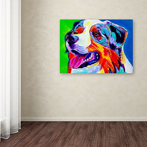 This ready to hang, gallery-wrapped art piece features a colorful portrait of a dog. Alicia VanNoy Call has been working on DawgArt since 2003. She takes her colorful inspiration for her paintings from the Desert Southwest. She works with various rescue and shelter groups by donating artwork to fundraising auctions to promote awareness and direct care for animals in need. Said Alicia, "DawgArt is meant simply to bring happiness to people and to help us remember our connection with Nature." Giclee (jee-clay) is an advanced printmaking process for creating high quality fine art reproductions. The attainable excellence that Giclee printmaking affords makes the reproduction virtually indistinguishable from the original piece. The result is wide acceptance of Giclee by galleries, museums and private collectors. Gallery wrap is a method of stretching an artist's canvas so that the canvas wraps around the sides and is secured a hidden, wooden frame. This method of stretching and preparing a canvas allows for a frameless presentation of the finished painting.Feature