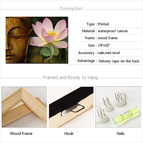 Waterproof canvas,professionally printed with fade resistant,premium inks,Buddha picture print for wall decor.