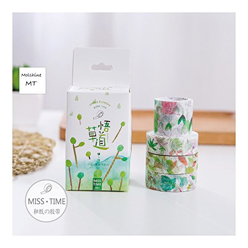-. Title : Molshine 4-in-1 Decorative Japanese Washi Masking Adhesive Tape –Miss time Series - Collection, (1 roll 3cm X 3m , 3 rolls 1.5cmX3m ) for DIY (WCL039)
