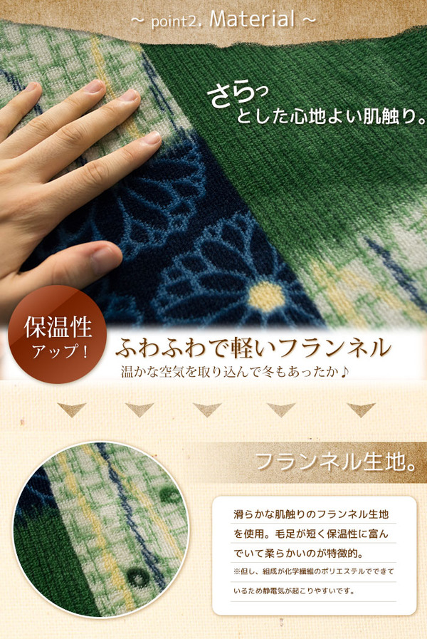 注意点:組成が化学繊維のポリエステルを多く占めているため静電気が発生しやすい仕様となっております。