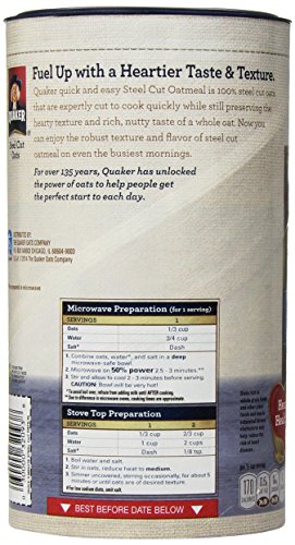 -. Title : Quaker Steel Cut Oatmeal, Quick 3 Minutes To Prepare, Breakfast Cereal, 25 oz Canister