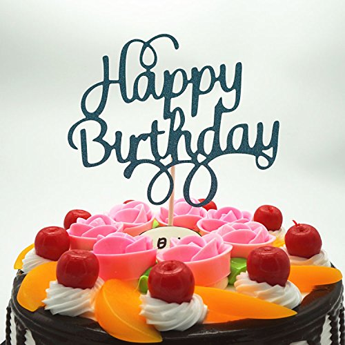 (USFEEL)/Stationery Party Supplies/Party Supplies/DIRECT FROM USA/2 Pack Happy Birthday Cake Topper Glitter Party Event Decorations Aqua Blue