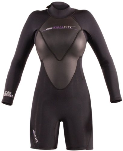 Hyperflex Womens 2mm Cyclone2 Long Sleeved Springsuit The Cyclone2 series combines top-of-the-line performance and features with an insanely low price point. Highlighting Cyclone2 is the QuantumFoam neoprene which is unbelievably stretchy and lightweight. Additionally, the interior Chest/Back Spring models are equipped with our FireFleece insulation fabric. Cyclone2 LS Spring also features a durable and warm-water flatlock stich. Cyclone 2 gives you the best possible value to price ratio on the market today. Sizes: 4, 6, 8, 10, 12, 14Feature