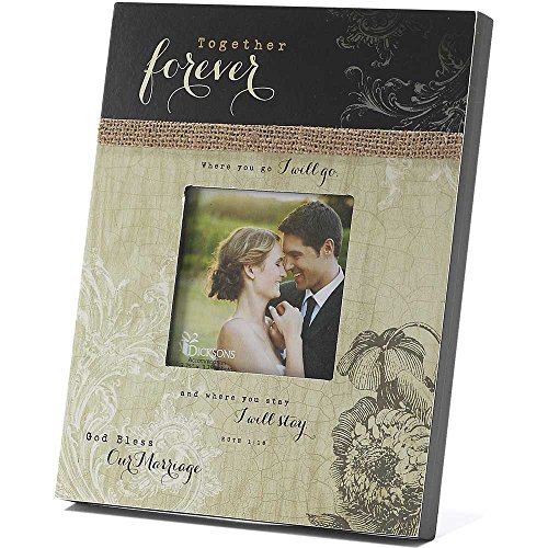 -. Binding : Kitchen -. Brand : Dicksons -. EAN : 0603799518154 -. Feature : Gorgeous wedding photo frame exudes decorator charm with its vintage design and elegant calligraphy / Features the well loved words from Ruth 1:16 "Where you go I will go, and where you stay I will stay", along with "Together forever" and "God bless our marriage" / Overall height of frame is 10" / Photo window opening is 3 3/4" square / Easel back for tabletop display -. Label : Dicksons -. Manufacturer : Dicksons -. MPN : PFW-41 -. PartNumber : PFW-41 -. ProductGroup : Home -. ProductTypeName : HOME -. Publisher : Dicksons -. Size : 10 inches height -. Studio : Dicksons -. Title : Tabletop Photo Frame - Together Forever/Where You Go -. UPC : 603799518154