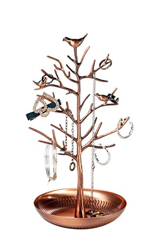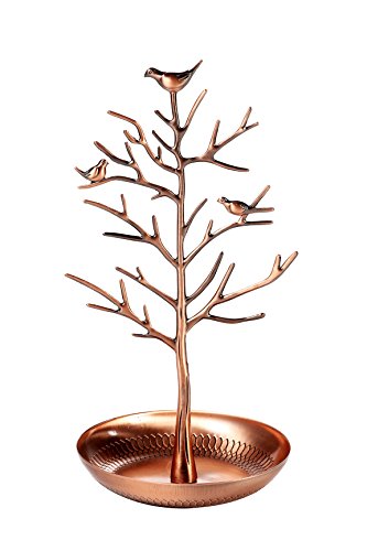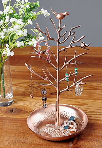 Shabby Chic Birds In Tree Jewelry Display - Holder Organizer for Necklaces, Bracelets, Earrings - Copper Plated