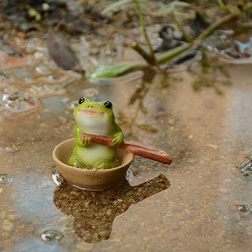 Top Collection Miniature Fairy Garden and Terrarium Frog Rowing Boat Figurine