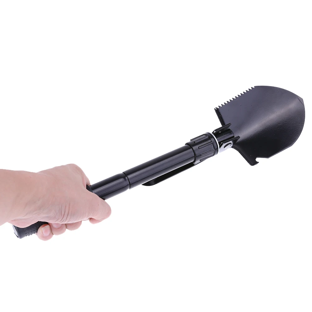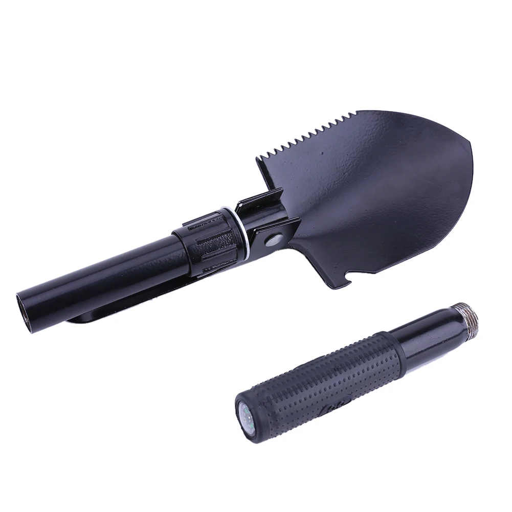 Features: Ultra lightweight, smart multi-function, super compact tool for your gardening and outdoor activities. Handles of the folding shovel fold twice. It is made to be compact in size when folded so it can easily be packed on a camping or beach trip or carried out to the garden. Comfortable soft rubber grip handle, thickened cutting edge, ergonomic design. Can be used either straight or at a 90 degree angle. Comes in a convenient carrying pouch with a loop so the shovel may attach to a belt or backpack. Comes with a compass at the bottom of the shovel. Specification: Full Length: approx. 40 cm/15.75 in Shovel Length: approx. 12.5 cm/4.92 in Spade Length: approx. 11 cm/4.33 in Weight: approx. 0.5 kg Package Size: approx. 11 X 17 cm/4.33 X 6.69 in 1 X Package Bag 1 X Tactical Shovel