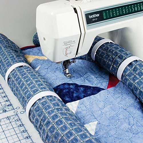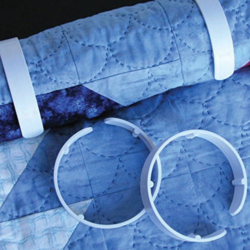 Made of heavy duty plastic construction these clips have the same strength as metal (bicycle pant leg clips), but won’t scratch your machine or furniture. 3” diameter by ¾” wide clips won’t rust, stain, or snag on your quilt.