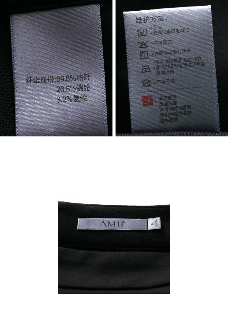 | 面料成分: | 69.6%粘纤 26.5%锦纶 3.9%氨纶 |