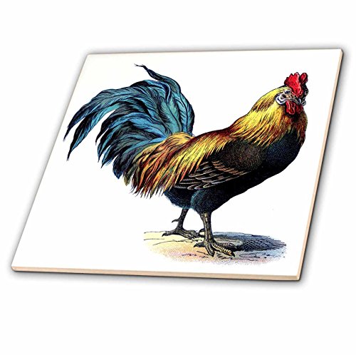 3dRose ct_37259_1 Blue Yellow Red Victorian Rooster Ceramic Tile, 4"